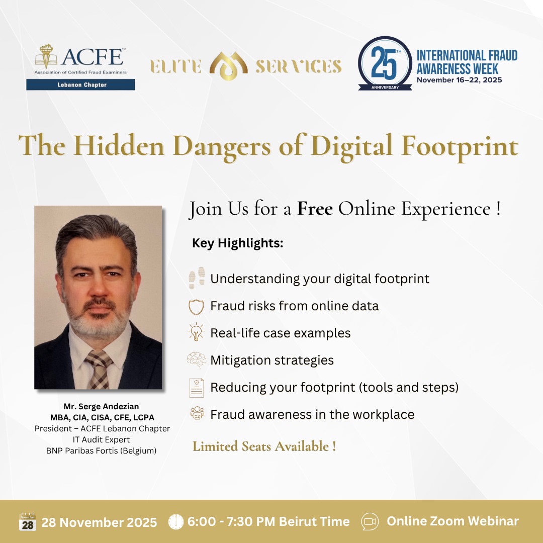 √ Speaker: Mr.Serge Andezian (MBA, CIA, CISA, CFE, LCPA)