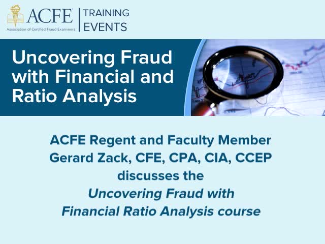 Learn how to use in-depth financial and ratio analysis to spot the warning signs of fraud in your organization during this two-day ACFE seminar. This instructor-led course will provide you with an overview of numerous types of analyses that can be used to identify embezzlement, corruption schemes and fraudulent financial reporting. Practical problems and real case examples discussed throughout the course will illustrate many of the principles and techniques are that presented.